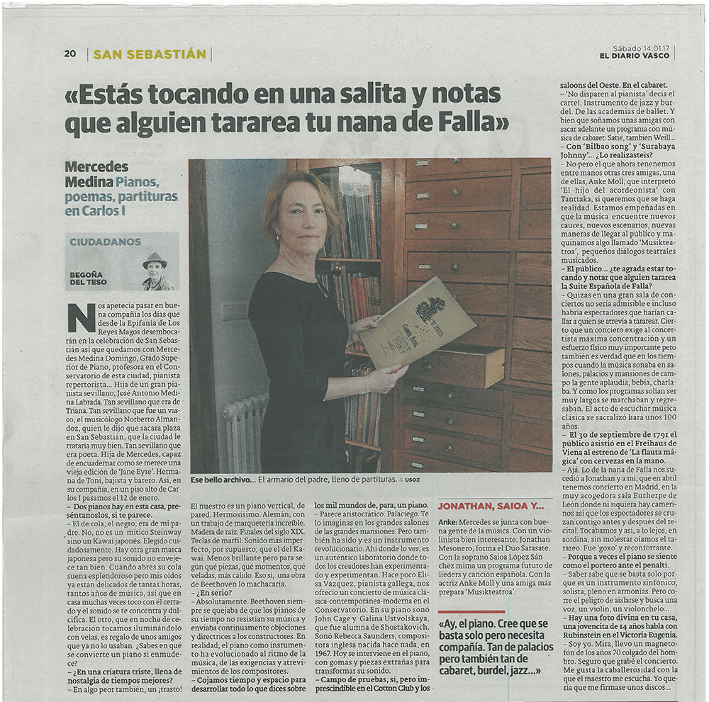 Entrevista con la periodista Begoña del Teso publicada en El Diario Vasco el 14/01/2017.